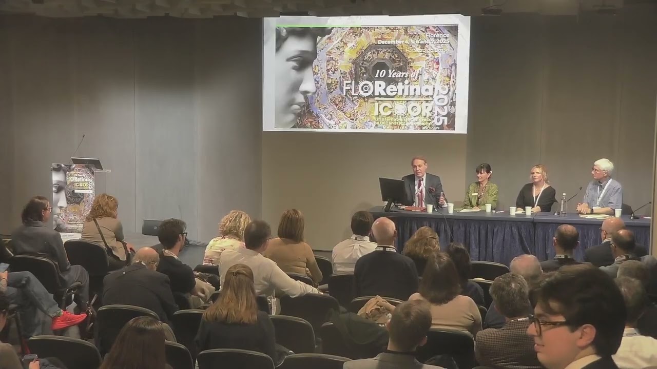 FLORetina 2025 panel discussion on indirect ophthalmoscopy for diagnostics and treatment. Featuring Prof. Paulo E. Stanga, Dr. Paul Runge, and industry experts.